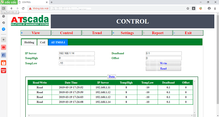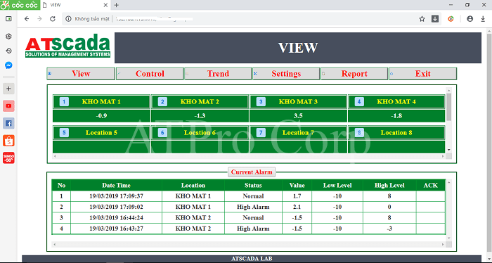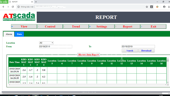 Có thể theo dõi tình hình nhiệt độ tất cả các kho tại cửa sổ view (hiển thị).