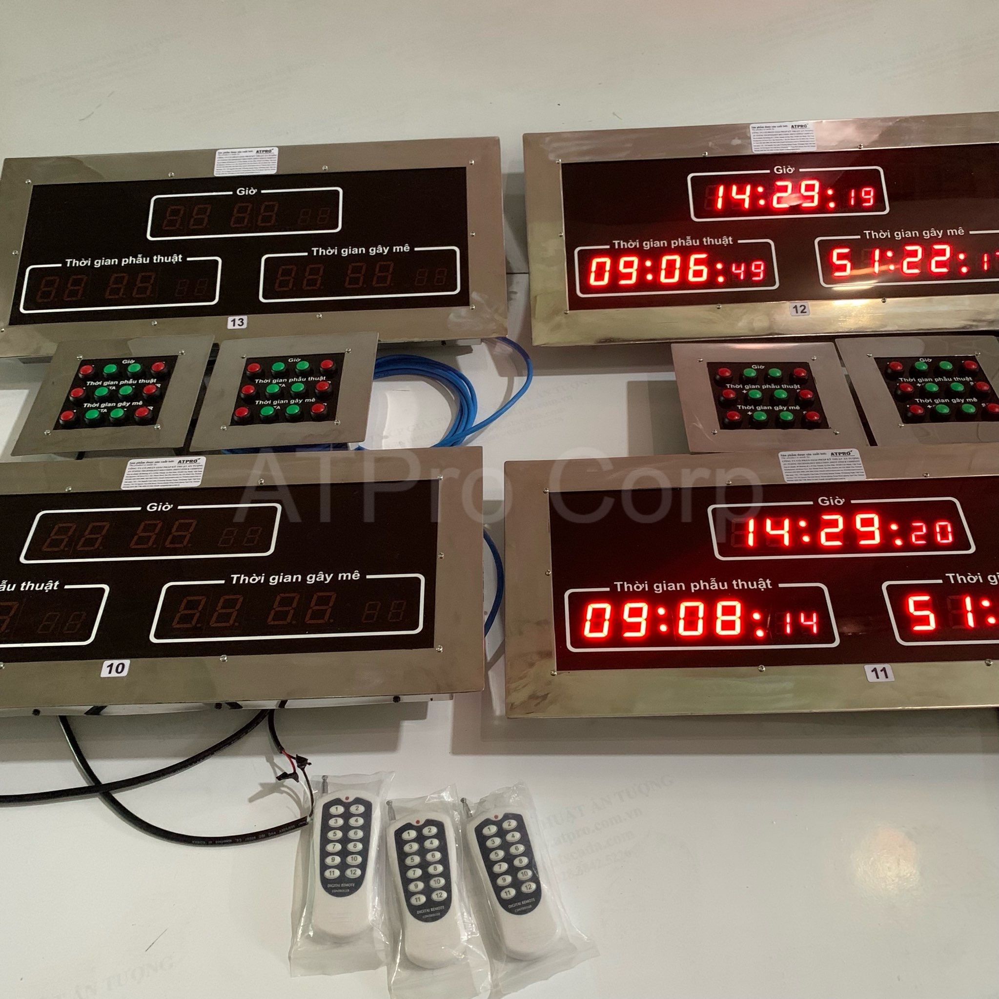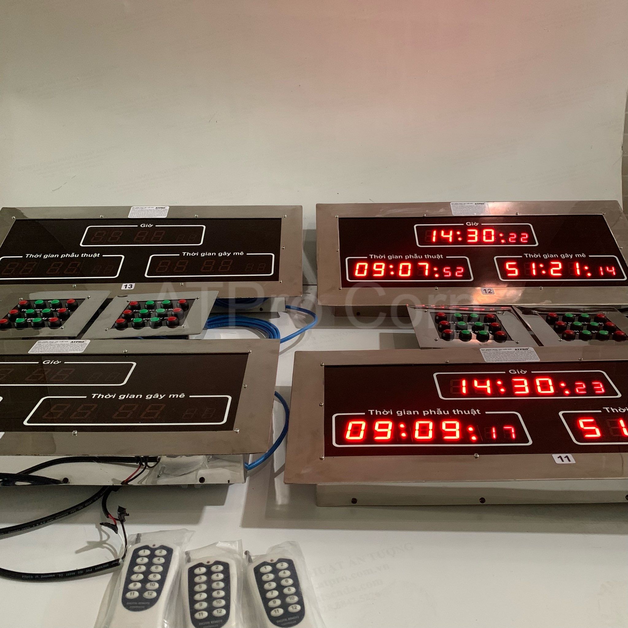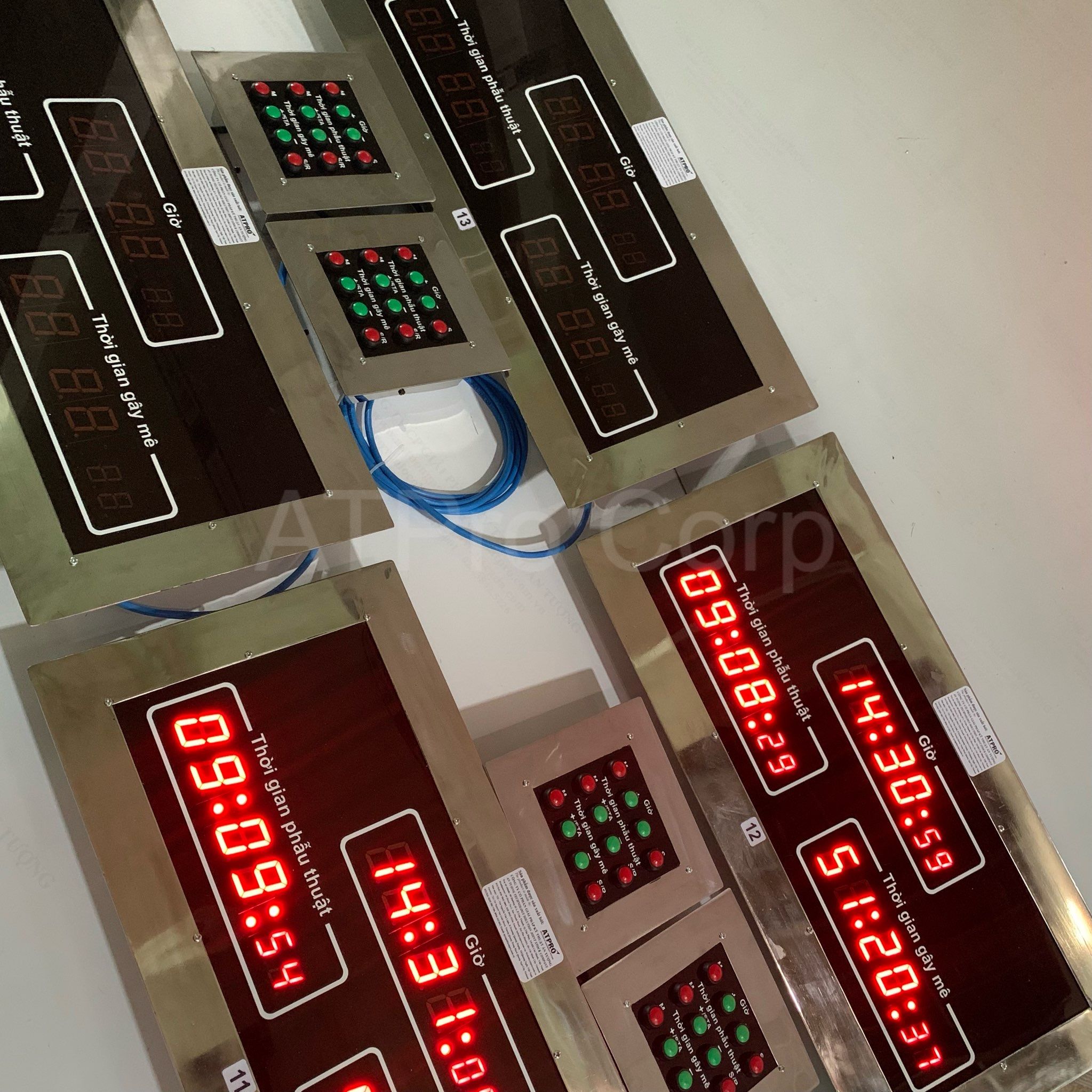 Sản phẩm được ATPro Corp thiết kế theo yêu cầu của Bệnh viện Hồng Ngự Đồng Tháp từ các thông số cho đến chi tiết thiết kế, phần hiển thị. Đồng hồ hiển thị thời gian chính xác, hỗ trợ đếm thời gian gây mê và thời gian phẫu thuật.