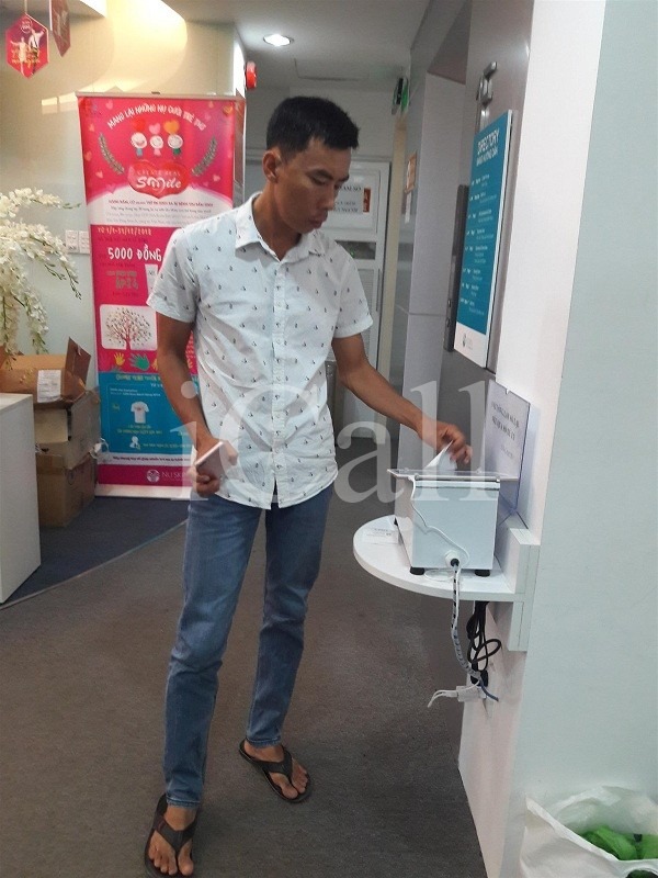 Bước 1: Khách hàng muốn tham gia dịch vụ tại các quầy phải lấy phiếu thứ tự tại các máy in phiếu thứ tự được bố trí tại các quầy.